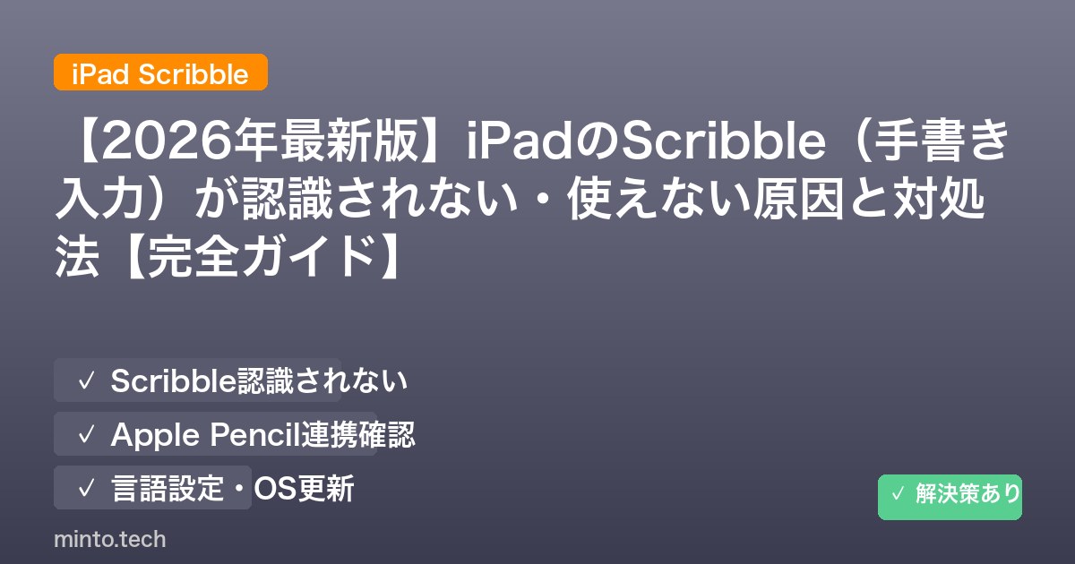 Home / Apple / iPhone / 【2026年最新版】iPadのScribble(手書き入力)が認識されない・使えない原因と対処法【完全ガイド】