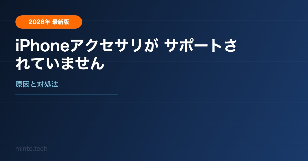 このメッセージはiPhoneがLightningポートまたはUSB-Cポートに接続されたアクセサリを正常に認識できないときに表示されます。充電が始まらない・Macやパソコンに接続できない・音楽が再生されないといった症状が伴います。