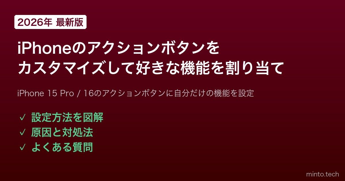 【2026年最新版】iPhoneのアクションボタンをカスタマイズして好きな機能を割り当てる方法【完全ガイド】
