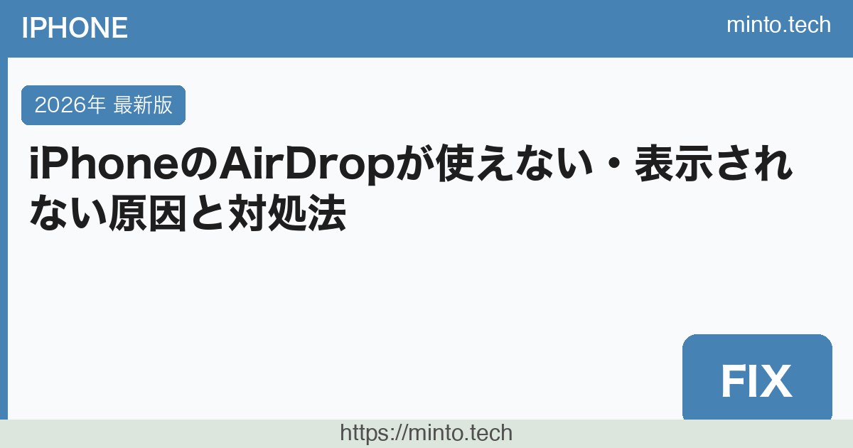 Home / Apple / iPhone / 【2026年最新版】iPhoneのAirDropが使えない・相手に表示されない原因と対処法【完全ガイド】