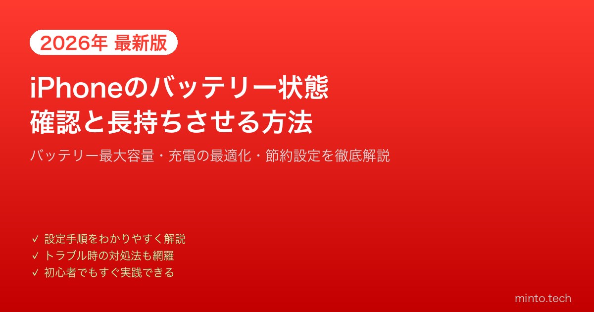 【2026年最新版】iPhoneのバッテリー状態を確認して長持ちさせる方法【完全ガイド】