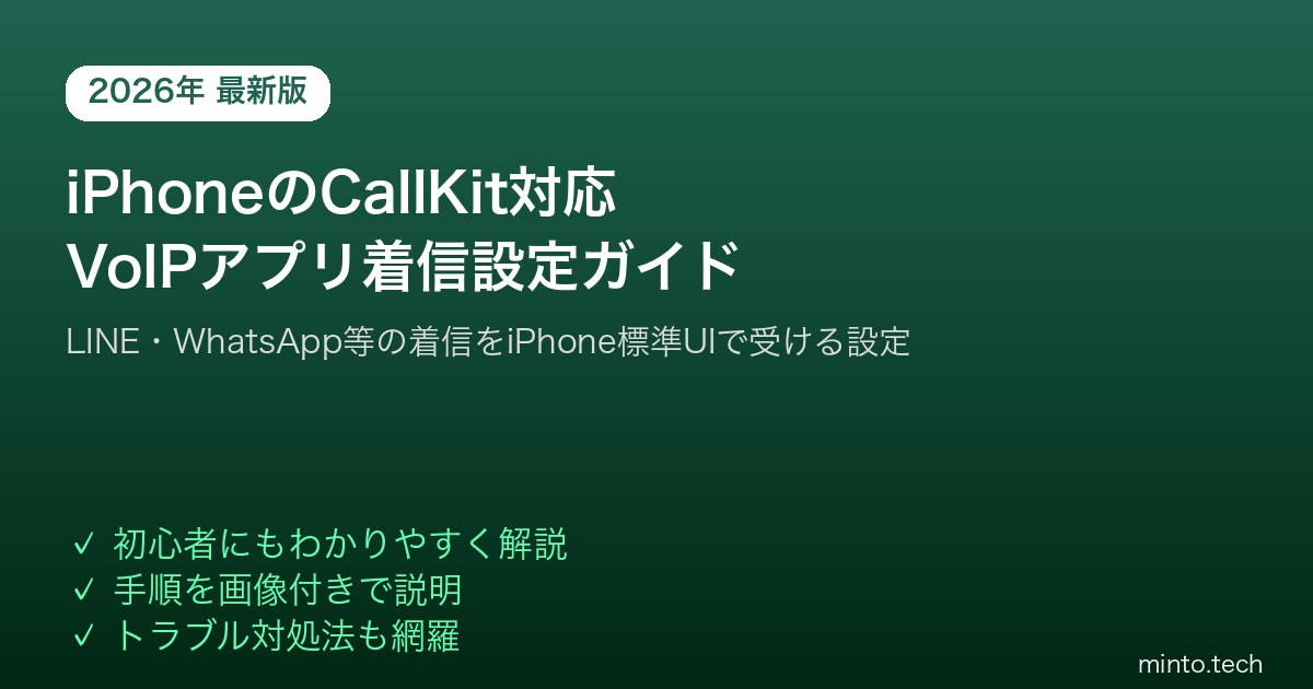 Home / Apple / iPhone / 【2026年最新版】iPhoneのCallKit対応アプリ(LINE・WhatsApp等)の着信通知設定方法【完全ガイド】