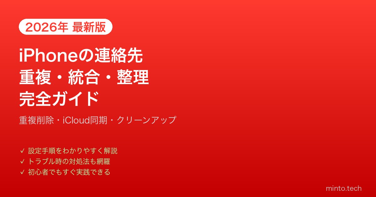 この記事では、iPhoneの連絡先重複を確認・統合・削除する方法を、初心者の方にもわかりやすく丁寧に解説します。iCloudやGoogleとの同期問題の対処法、一括整理の方法、大切な連絡先のバックアップ方法まで、完全ガイドとしてお届けします。