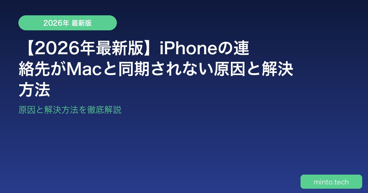 iPhoneとMacの連絡先同期問題はiCloud設定の確認(両デバイスで「連絡先」がON)と同一Apple IDでのサインインで多くの場合解決します。同期が止まっている場合は連絡先同期のOFF/ONで強制再同期を試みてください。