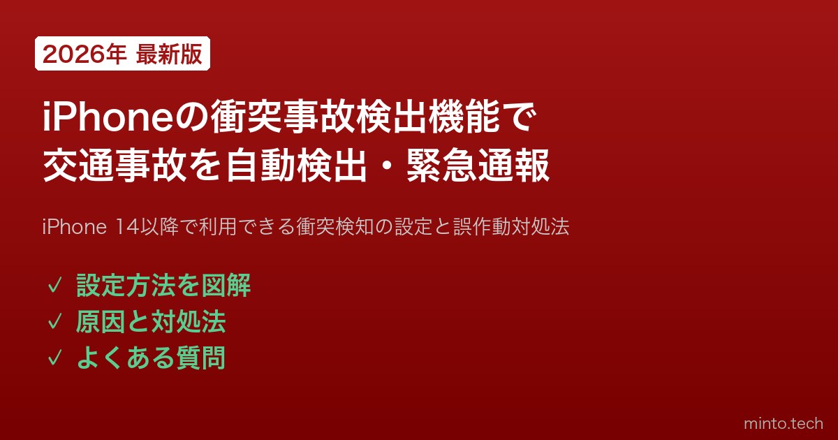 Home / Apple / iPhone / 【2026年最新版】iPhoneの衝突事故検出機能を設定・確認する方法【完全ガイド】