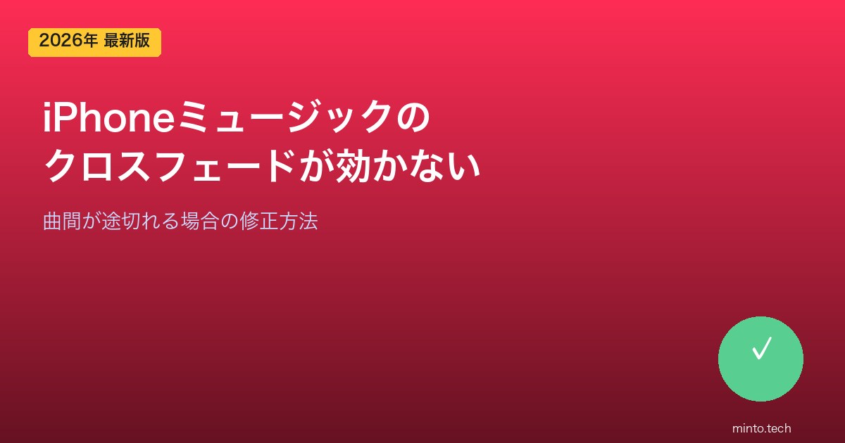 Home / Apple / iPhone / 【2026年最新版】iPhoneのミュージックでクロスフェードが効かない・曲間が途切れる原因と対処法【完全ガイド】