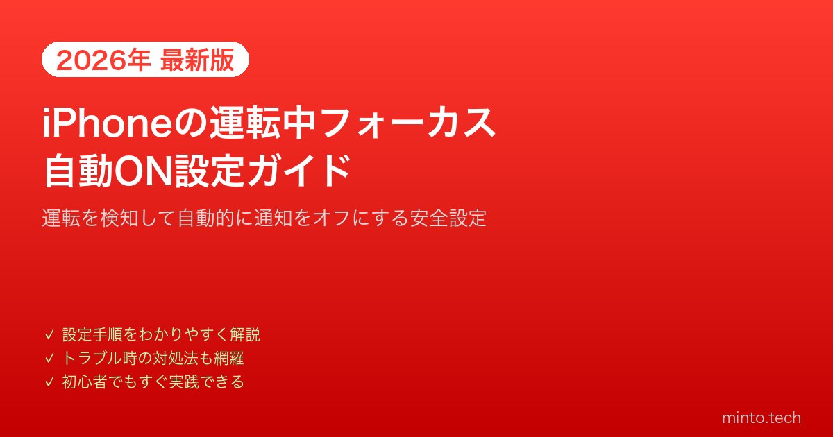 運転中にスマホの通知が気になって画面を見てしまう——これは非常に危険な行為です。iPhoneには「運転中フォーカス」という機能があり、車での移動中は自動的に通知を制限して安全運転を支援してくれます。