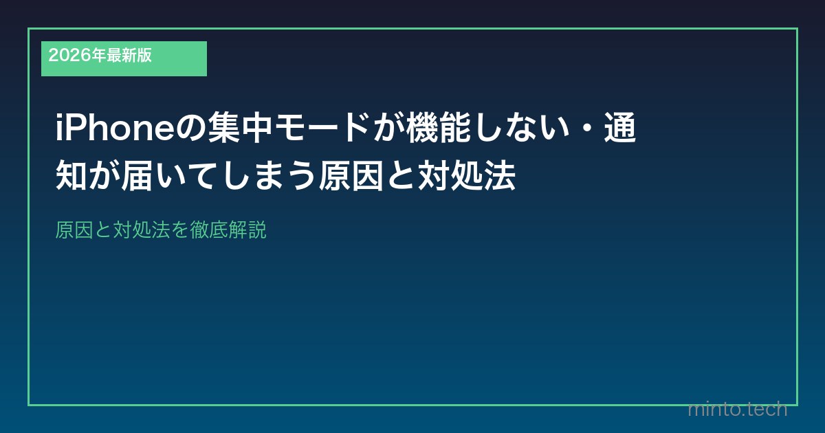 Home / Apple / iPhone / 【2026年最新版】iPhoneの集中モードが機能しない・通知が届いてしまう原因と対処法