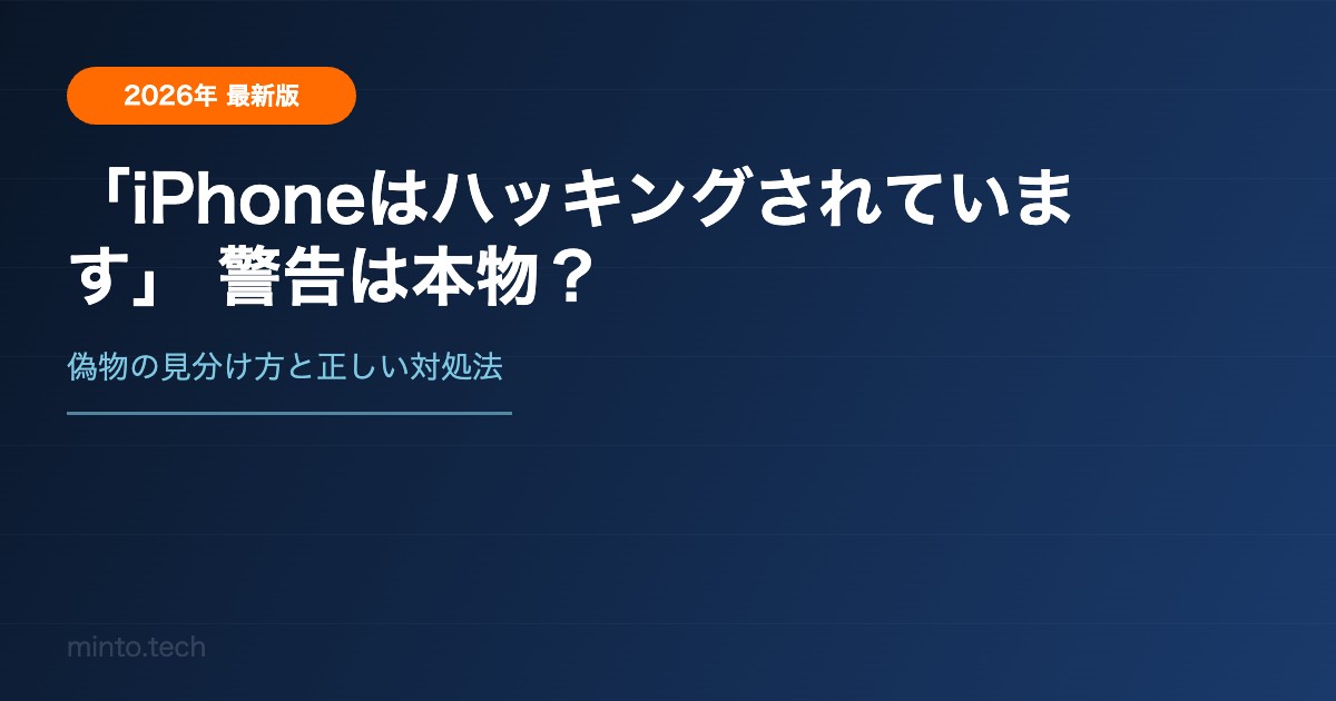 iPhoneを使っていると突然「このiPhoneはハッキングされています」「ウイルスに感染しています」といった警告が表示されることがあります。この警告を見て焦る気持ちは当然ですが、ほぼ100%フィッシング詐欺(偽の警告)です。この記事では警告の正体と正しい対処法を解説します。