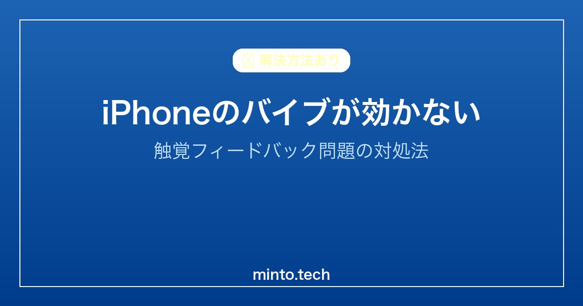 iPhoneのバイブレーションが効かない問題は、サイレントスイッチの確認と設定 → サウンドと触覚 → バイブレーションのオンで解決するケースがほとんどです。「マナーモード中にバイブレーション」も確認することを忘れずに。