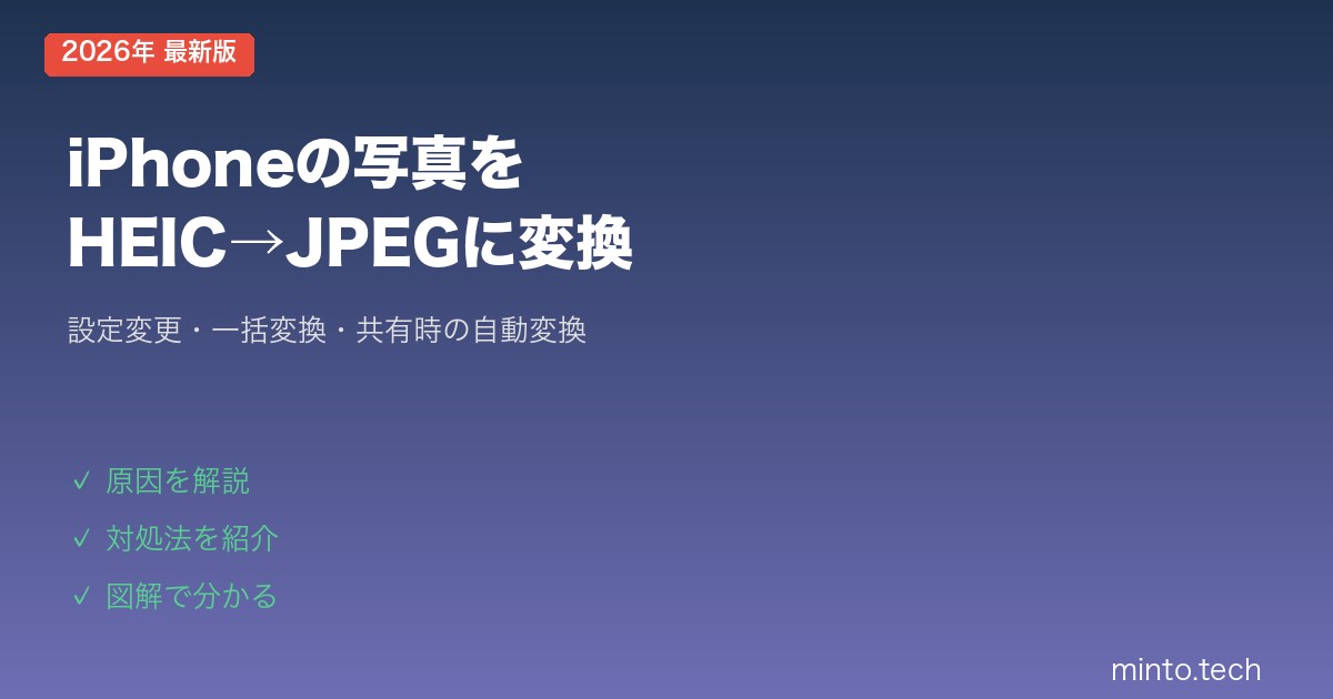 【2026年最新版】iPhoneの写真をHEIC→JPEGに変換する方法【設定・一括変換ガイド】