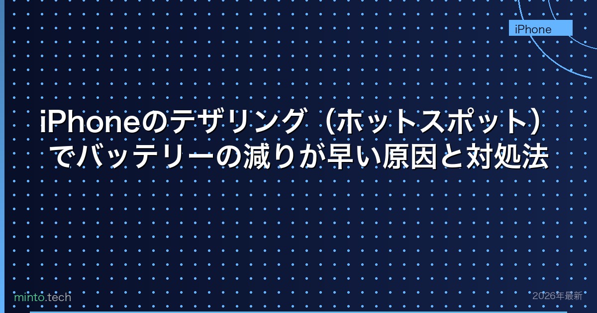 この記事では、iPhoneのテザリング中にバッテリーが急速に減る原因と、具体的な対処法を詳しく解説します。