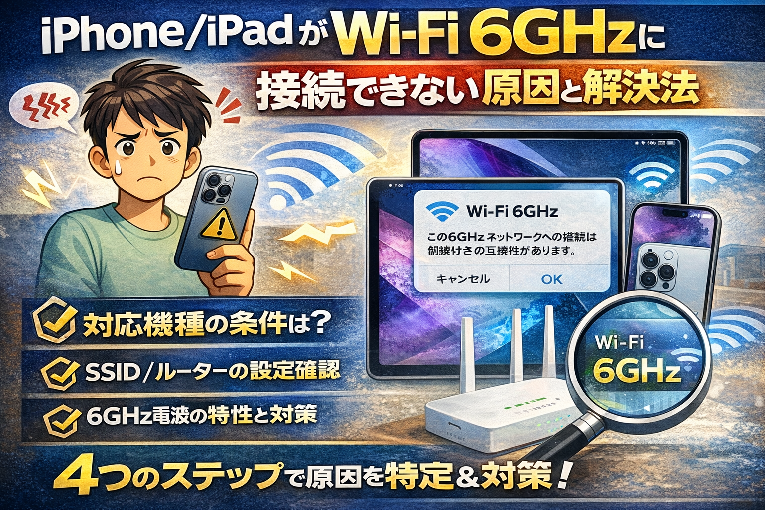 iPhone/iPadが6GHz帯に接続できない場合、様々な原因が考えられますが、一つ一つ対処することで問題は解消できます。