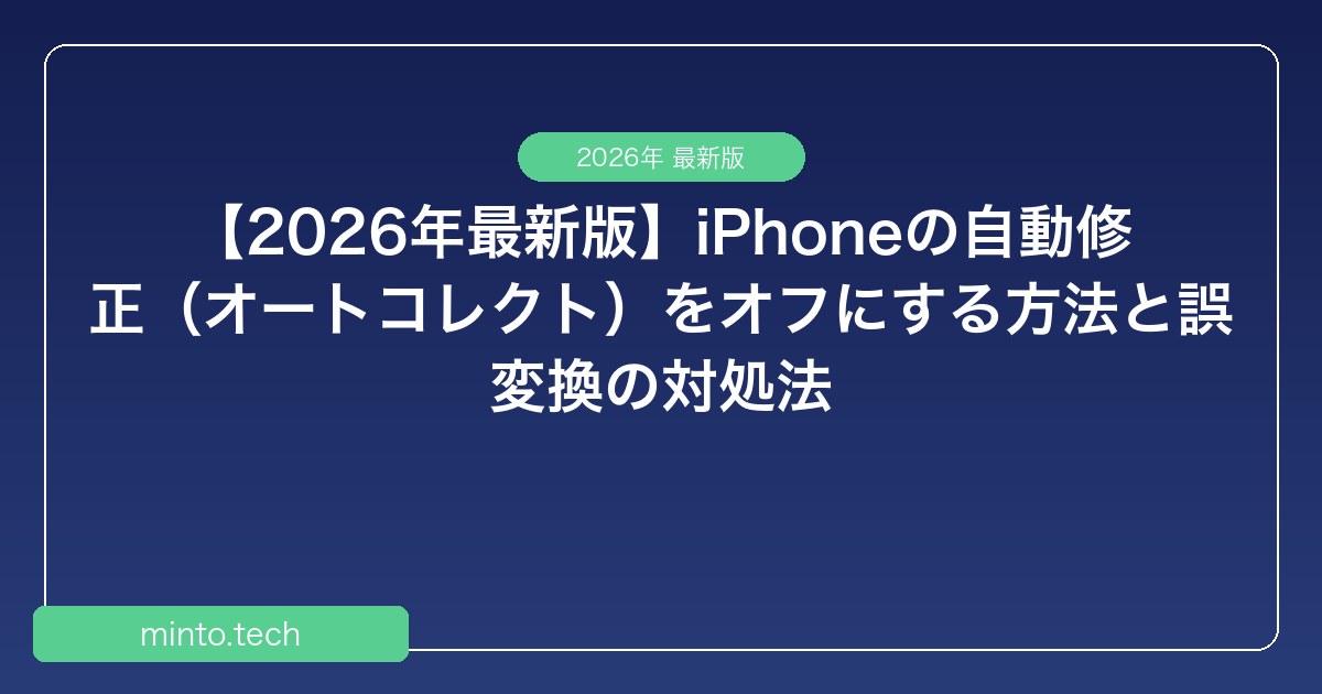 Home / Apple / iPhone / 【2026年最新版】iPhoneの自動修正(オートコレクト)をオフにする方法と誤変換の対処法