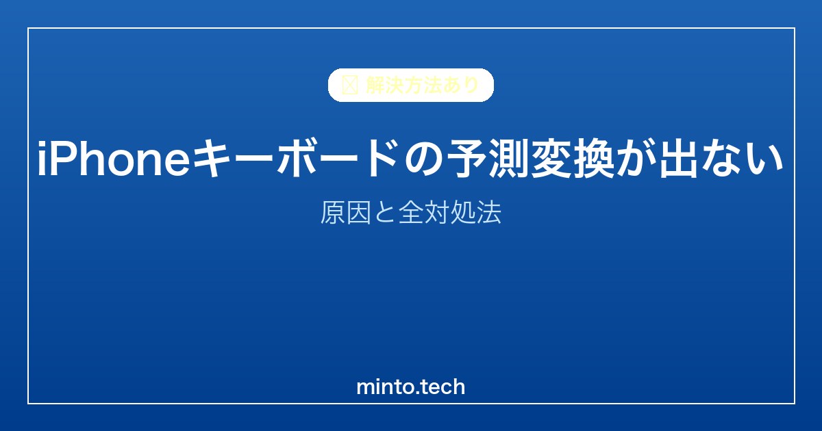 iPhoneの予測変換が表示されない問題は、設定 → 一般 → キーボード → 「予測変換」のオン/オフ確認で解決するケースがほとんどです。それでも改善しない場合は「キーボードの変換学習をリセット」または日本語キーボードの再追加を試してみてください。