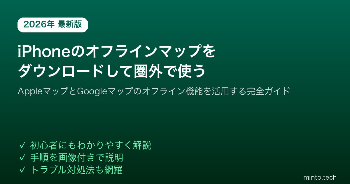 Home / Apple / iPhone / 【2026年最新版】iPhoneのAppleマップ・Googleマップのオフラインマップをダウンロードして圏外で使う方法【完全ガイド】