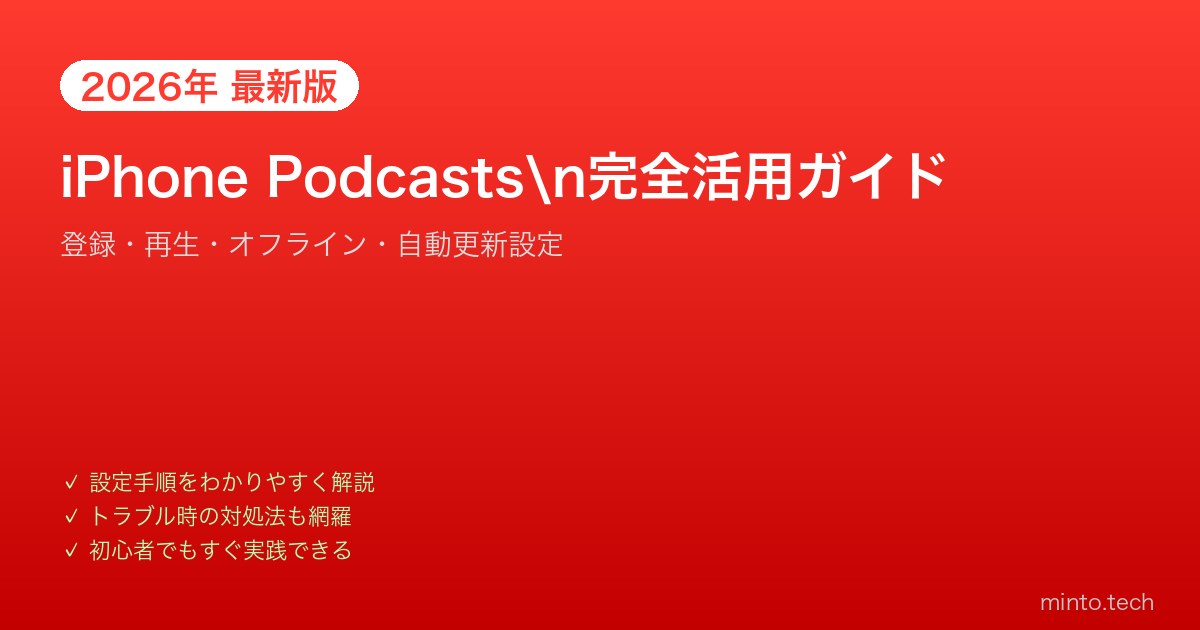 Home / Apple / iPhone / 【2026年最新版】iPhoneのPodcastsアプリ完全活用ガイド【登録・再生・オフライン】