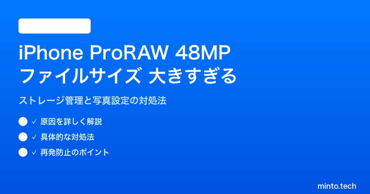 【2026年最新版】iPhoneのProRAW 48MP写真のファイルサイズが大きすぎる場合の対処法【完全ガイド】