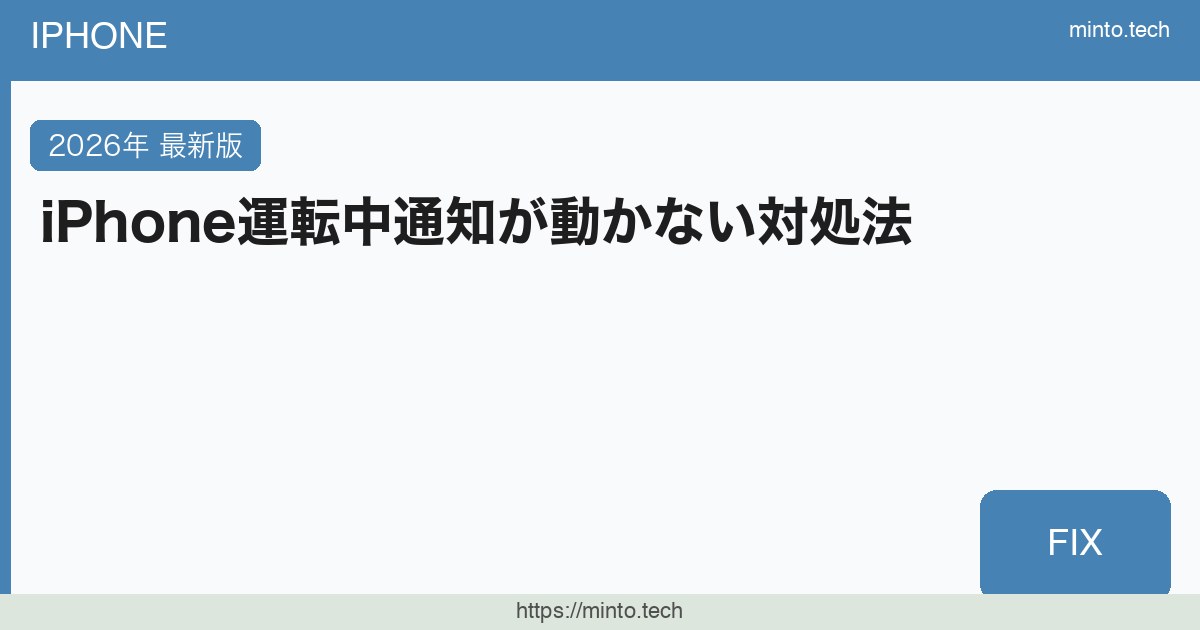 本記事では、2026年最新のiOS環境を踏まえて、運転中通知が動かない・設定できない原因とその対処法を順を追って丁寧に解説します。この記事を読めば、9割以上のケースで問題を解決できます。