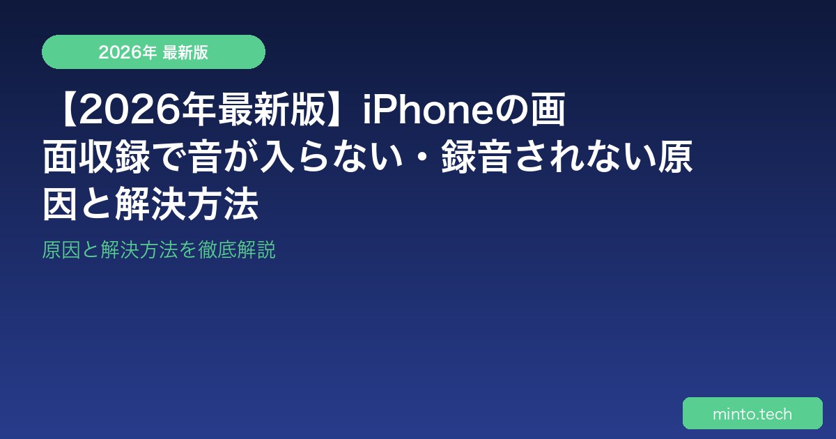 iPhoneの画面収録(スクリーンレコーディング)で動画は撮れるのに音声が入らない、マイク音声が録音されない、ゲームの効果音が入らないなど、画面収録の音声問題を解決する方法を解説します。