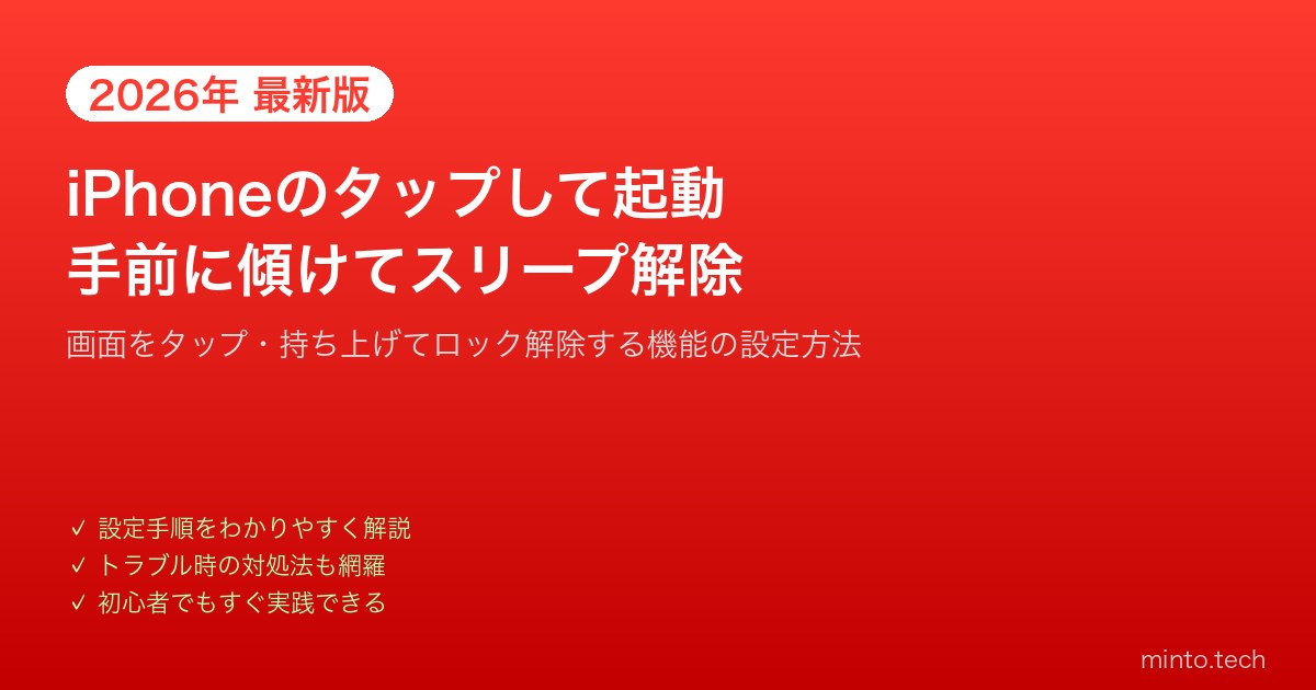 この記事では、「タップして起動」と「手前に傾けてスリープ解除」のオン・オフ設定方法と活用術を2026年最新iOS対応で解説します。