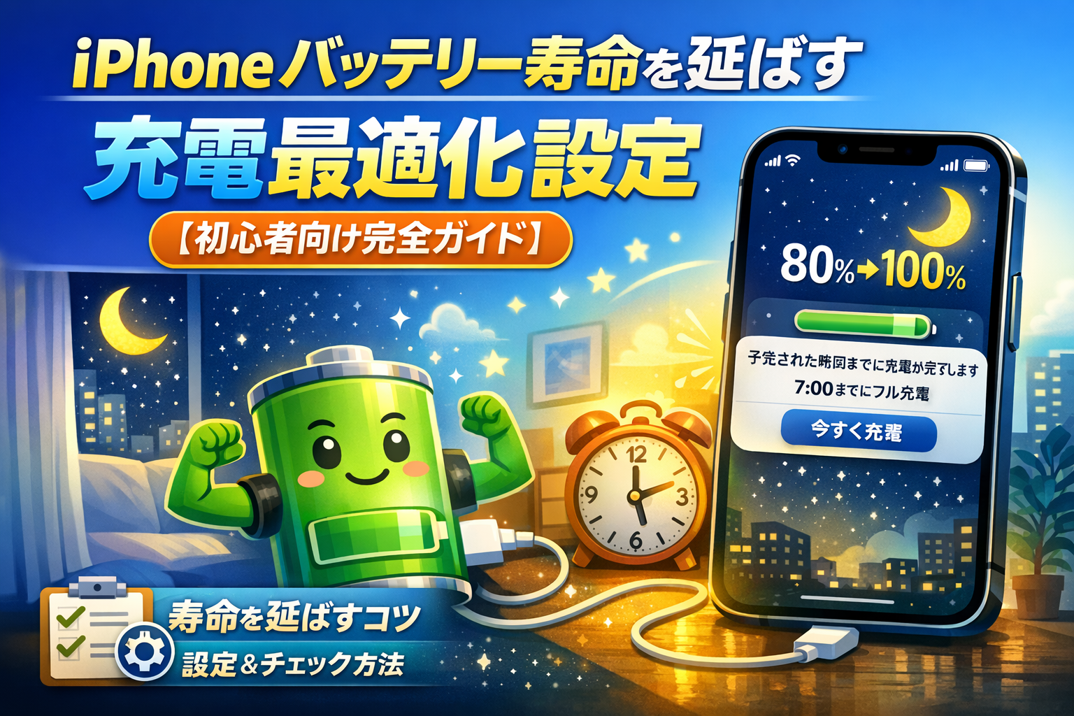 💡誤解4: 「夜寝る前に充電しっぱなしはバッテリーに悪い」