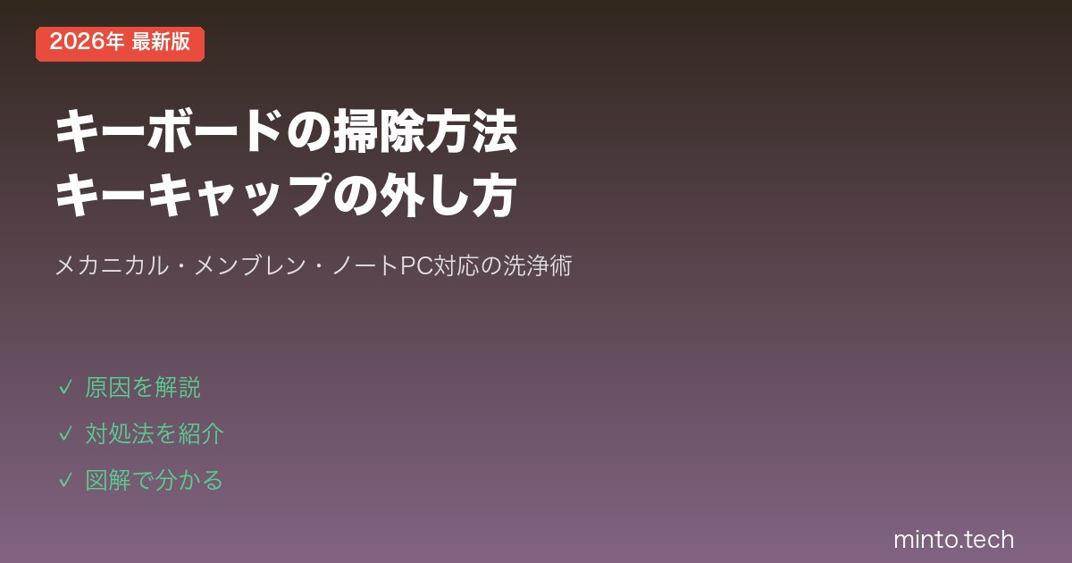 この記事では、メカニカルキーボード・メンブレンキーボード・ノートPCキーボードそれぞれの掃除方法を、キーキャップの外し方から洗浄・乾燥まで、初心者の方にもわかりやすくステップ形式で徹底解説します。正しい掃除方法を知れば、キーボードの寿命を延ばし、快適な打鍵感を取り戻せます。