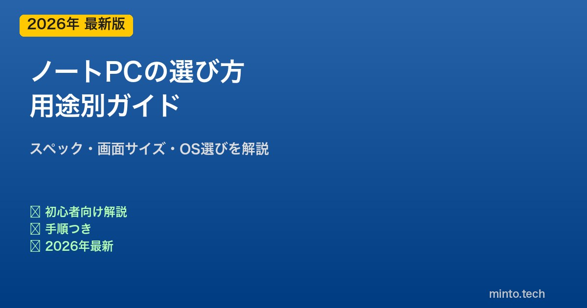 この記事では、スペックの読み方から用途別のおすすめスペック、画面サイズ・重量の選び方、OS選び、価格帯別のガイドまで、ノートPC選びに必要な知識をまるごと解説します。