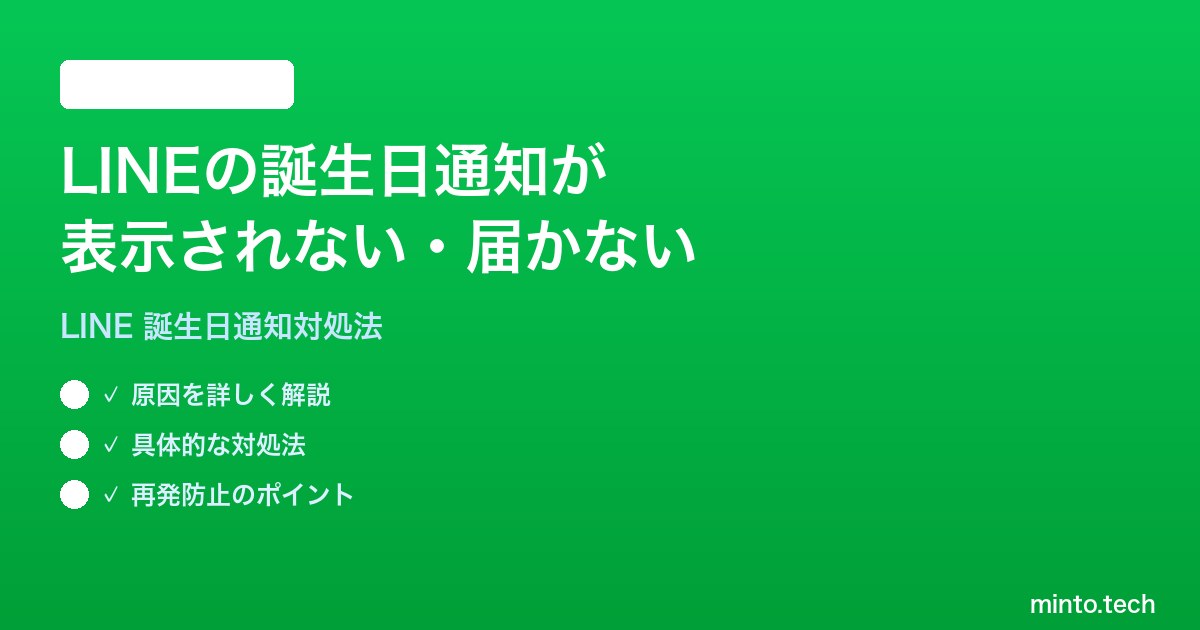 LINEの誕生日通知が表示されない・届かない原因と対処法をまとめると、以下のとおりです。