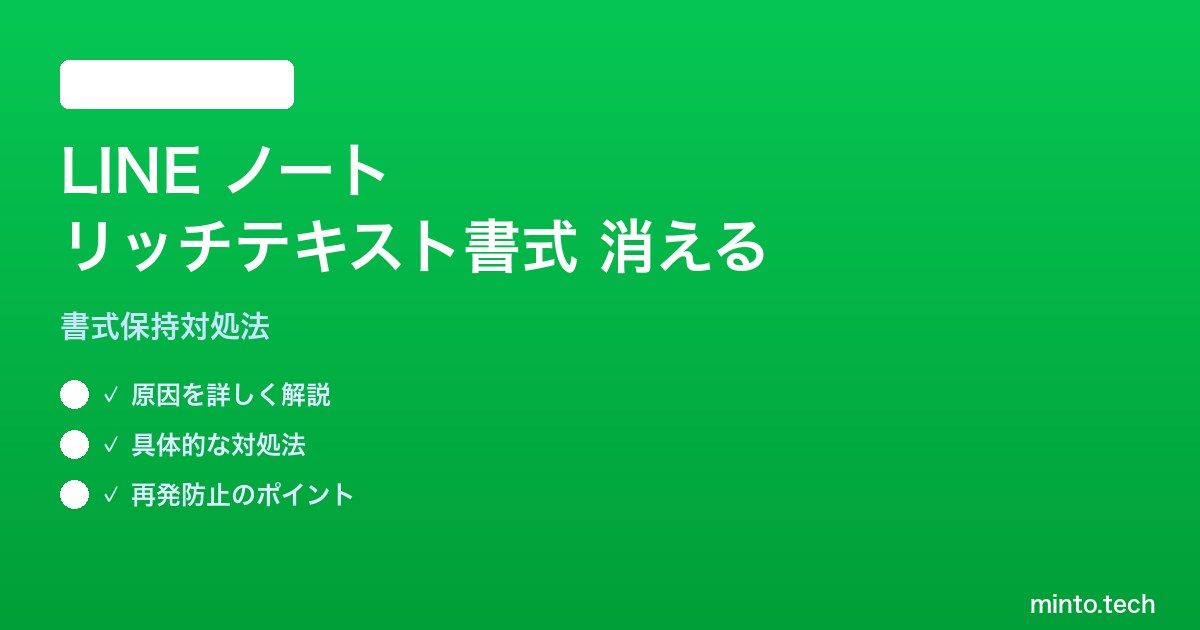 LINEノートで一生懸命書いたリッチテキスト——太字や色付きのテキスト、見出し、箇条書きなど——が、保存後や他のデバイスで開いたときに突然消えてしまっていた経験はありませんか?