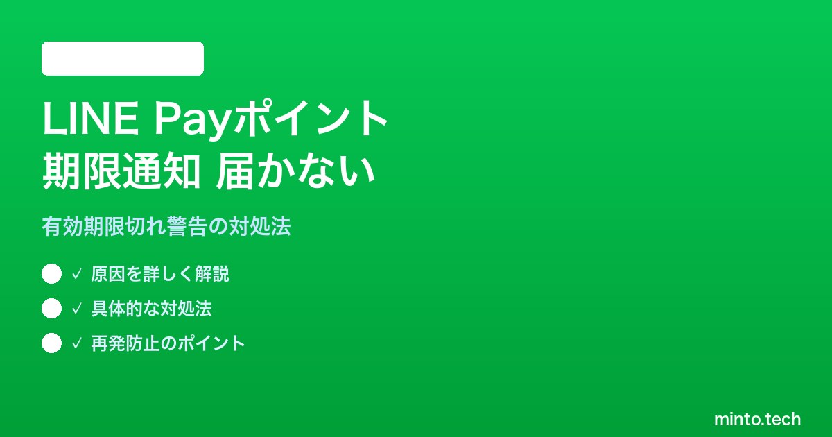 まずLINEアプリの通知設定とOS側の通知許可を確認し、LINE Pay公式アカウントのブロックを解除しましょう。それでも改善しない場合は、通知に頼らず月1回のポイント残高確認を習慣にすることが最も確実な失効防止策です。貯めたポイントを無駄にしないために、本記事の対処法をぜひ実践してください。