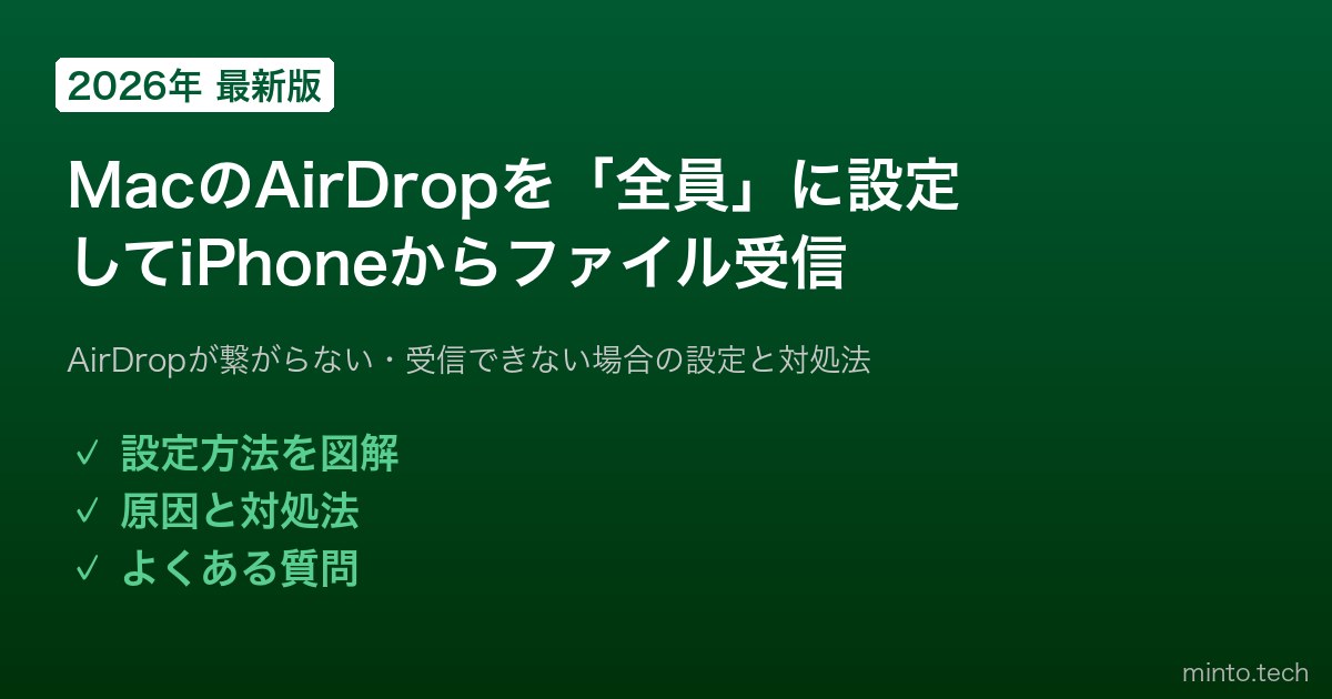 Home / Apple / Mac / 【2026年最新版】MacのAirDropで「全員」に設定してiPhoneからファイルを受け取る方法【完全ガイド】