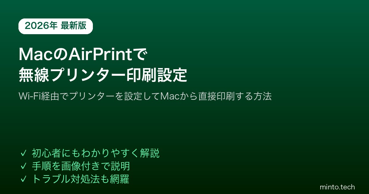 Home / Apple / Mac / 【2026年最新版】MacのAirPrintで無線プリンターを設定してWi-Fi経由で印刷する方法【完全ガイド】