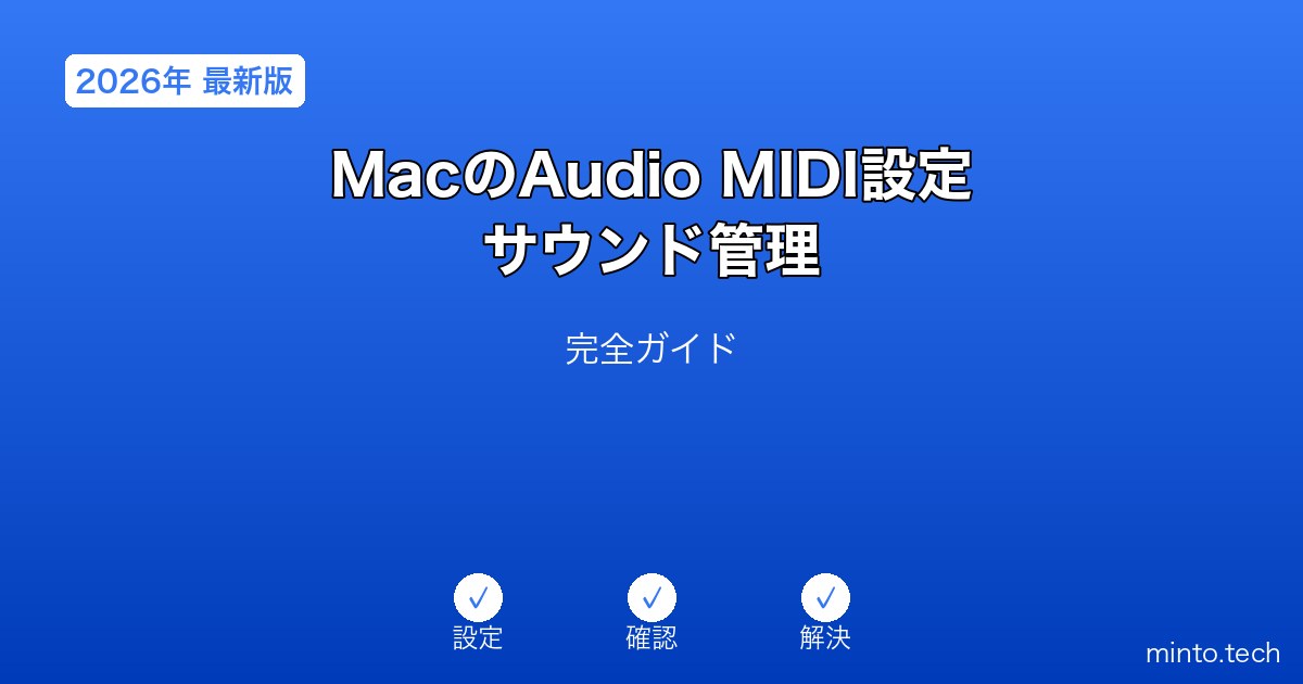 この記事では、Audio MIDI設定の起動方法から、入出力デバイスの確認・設定、サンプルレートやビット深度の変更、さらに仮想オーディオデバイス(複数出力デバイス・集約デバイス)の作成方法まで、2026年最新版として丁寧に解説します。