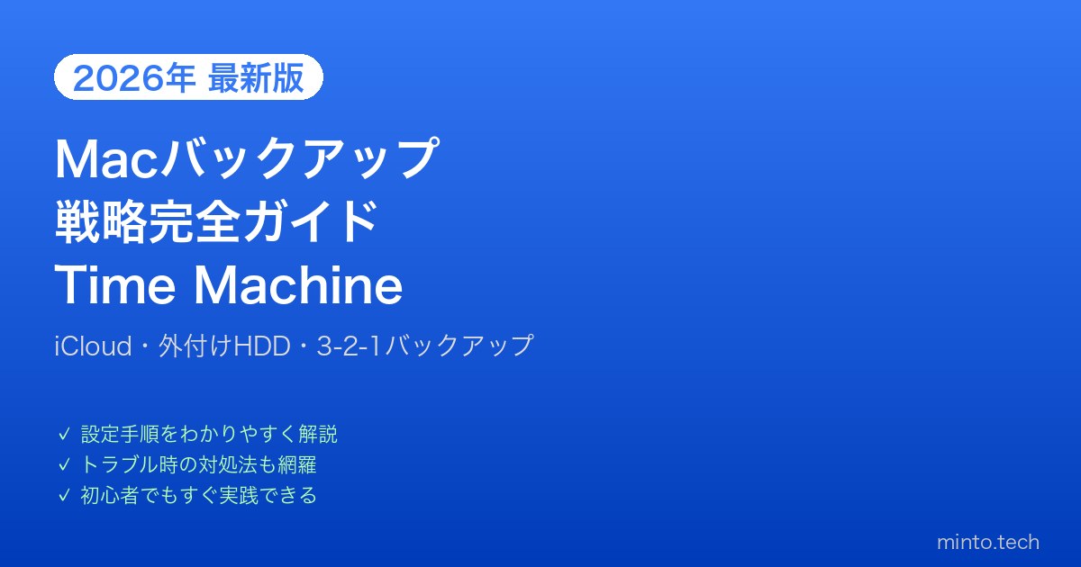 この記事では、プロも実践する「3-2-1バックアップ戦略」の考え方から、Time Machine・iCloud・外付けHDDの使い分け、バックアップの確認・テスト方法まで詳しく解説します。