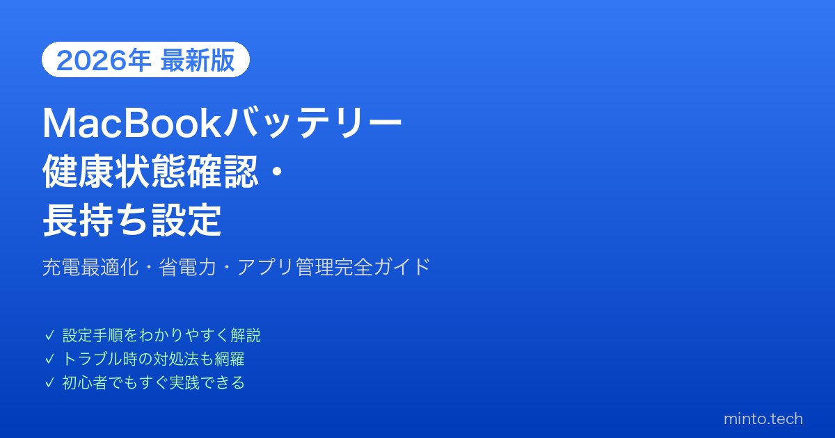 MacBookのバッテリー健康状態確認・長持ち設定完全ガイド【2026年最新版】