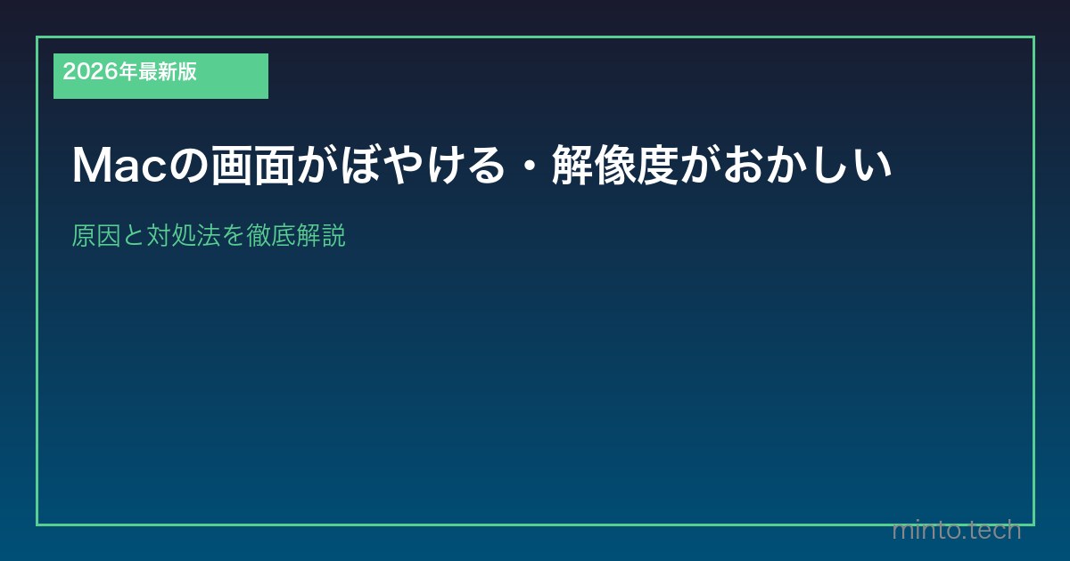 Macの画面がぼやける・解像度がおかしくなった場合、ディスプレイ設定の「解像度」変更・SMCリセット・外部ディスプレイのスケーリング設定が原因であることが多いです。