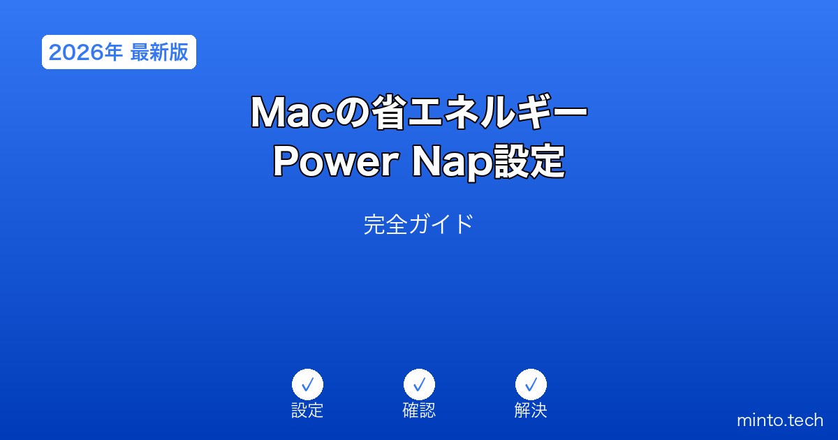 この記事では、Macの省エネルギー設定の仕組みから、Power Napの活用方法、バッテリーを長持ちさせる具体的な設定まで、2026年最新版として徹底解説します。MacBook Air・MacBook Pro・Mac miniなど全機種に対応しています。