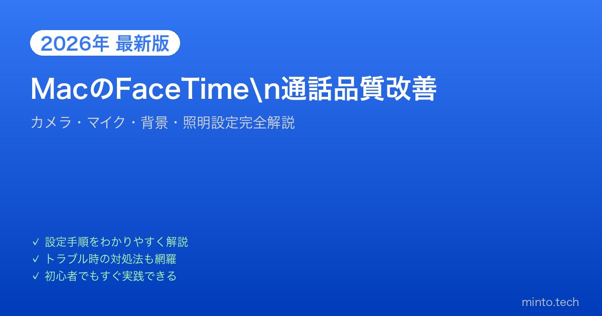 【2026年最新版】MacのFaceTime通話品質改善・設定完全ガイド【カメラ・マイク・背景】