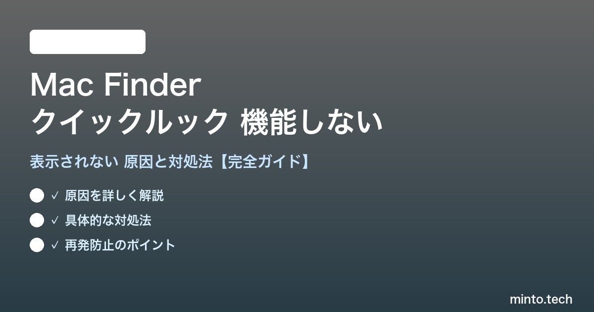 【2026年最新版】MacのFinderクイックルック(Quick Look)が機能しない・表示されない原因と対処法【完全ガイド】