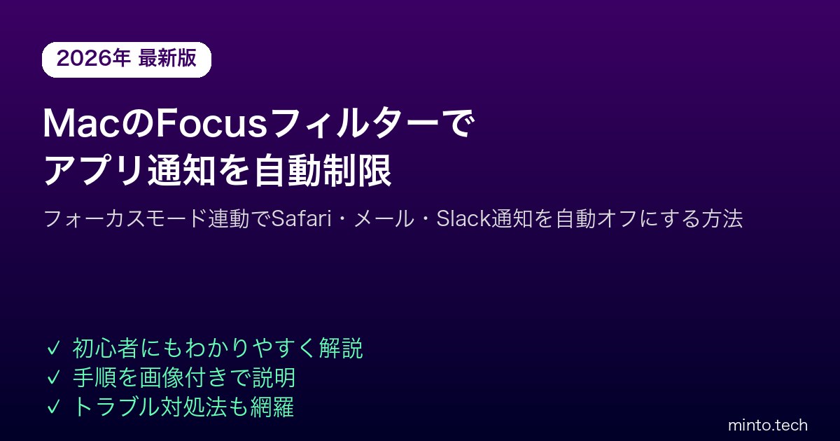 【2026年最新版】MacのFocusフィルターでSafari・メール通知を制限する方法【完全ガイド】