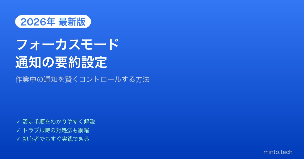 フォーカスモードと通知の要約をうまく組み合わせることで、Macでの作業中の通知による中断を大幅に減らせます。最初に「仕事」フォーカスを設定し、スケジュールで自動化するだけでも集中力の向上を実感できるはずです。ぜひ自分のライフスタイルに合わせてカスタマイズしてみてください。