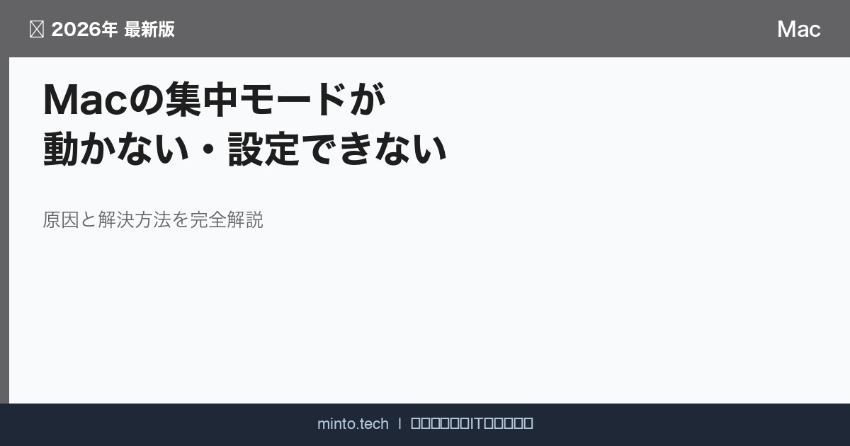 macOSの集中モード(Focus / フォーカス)は、仕事や勉強など特定の時間帯に通知を遮断し、集中力を高めるための機能です。しかし、設定が複雑なためにトラブルが起きやすく、「なぜか機能しない」と感じるユーザーが続出しています。