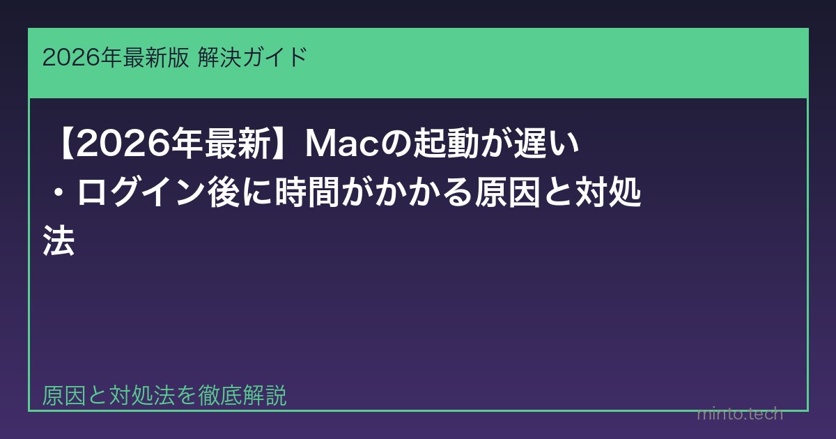 Macの電源を入れてからログイン画面が出るまで、またはログイン後にデスクトップが使えるようになるまで時間がかかる問題は、LaunchAgentやログイン項目の増加が主な原因です。この記事で解決方法を解説します。