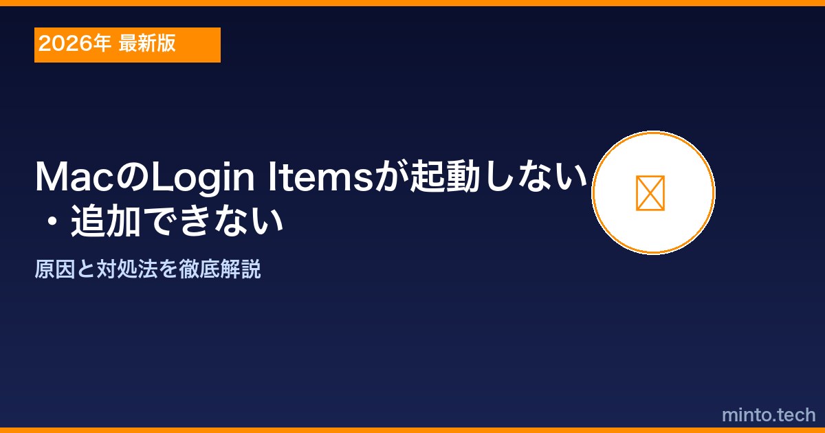 【2026年最新版】MacのLogin Items(ログイン項目)が起動しない・追加できない原因と対処法