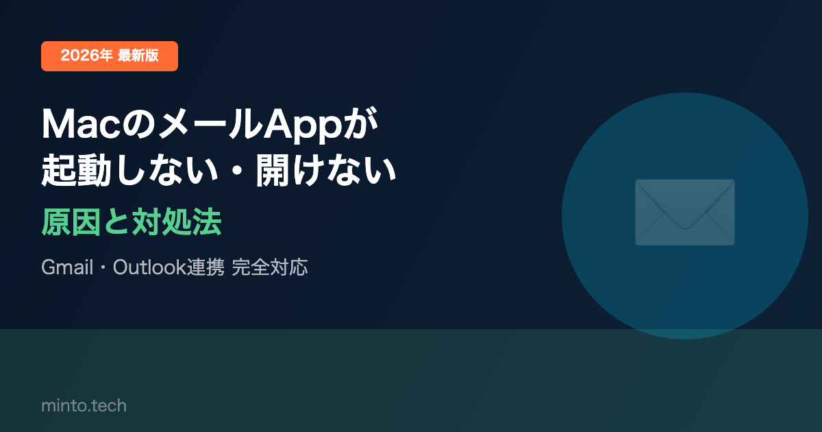 この記事では、MacのメールAppが起動しない・開けない原因を網羅的に解説し、初心者でも実践できる順番で対処法を紹介します。ほとんどのケースはこの記事の手順で解決できます。
