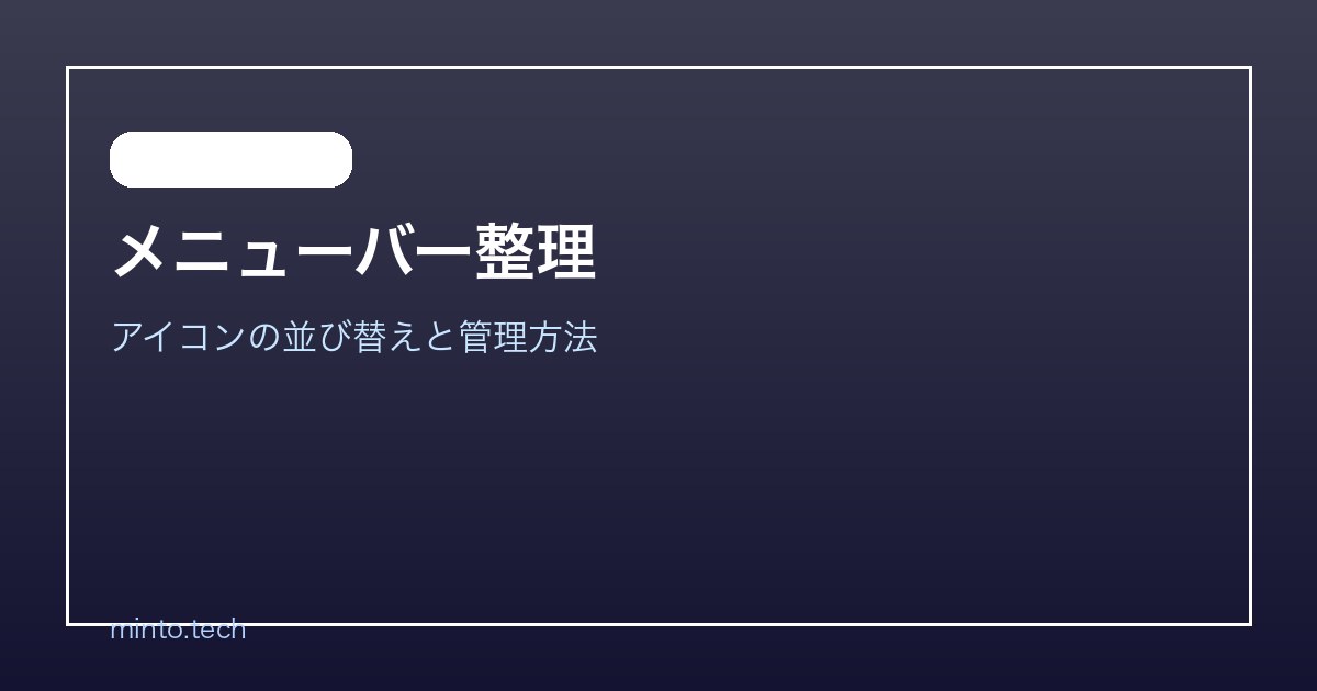メニューバーアイコンの管理にはCommandドラッグとコントロールセンター設定が基本です。より細かく制御したい場合はBartenderやIceなどのアプリが便利です。