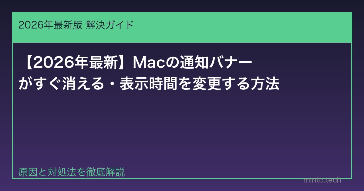 MacでSlackやメールなどの通知バナーが現れてすぐに消えてしまい、内容を読む間もないという悩みを持つ方は多いです。この記事では通知バナーの表示時間を調整する方法と、より確実に通知を確認できる設定を解説します。