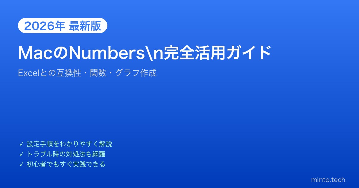 本記事では、Numbers の基本操作からExcelとの互換性・便利な関数・グラフ作成まで、2026年最新情報をもとに完全解説します。ExcelからNumbersへの乗り換えを検討している方にも役立つ内容です。