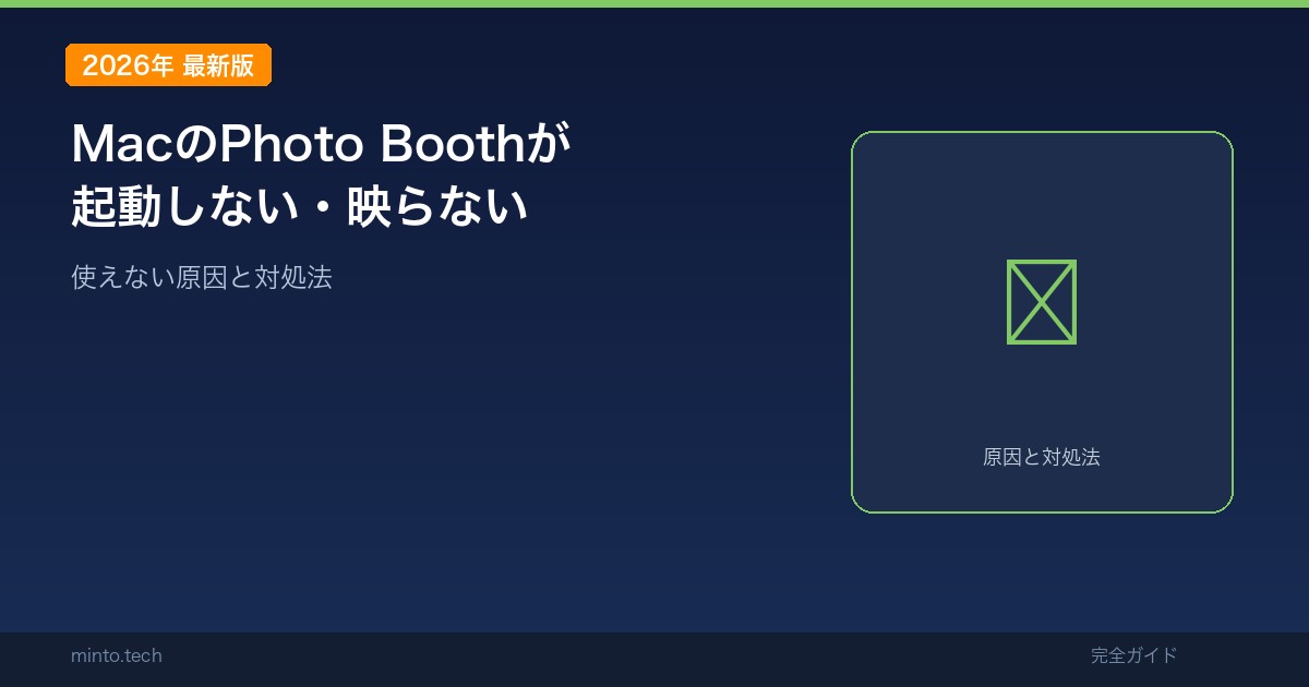 この記事では、MacのPhoto Boothが起動しない・カメラが映らない・使えない原因を特定し、初心者でもすぐに試せる具体的な対処法をステップ形式でわかりやすく解説します。多くの場合、設定の見直しや簡単な操作だけで解決できますので、ぜひ順番に試してみてください。